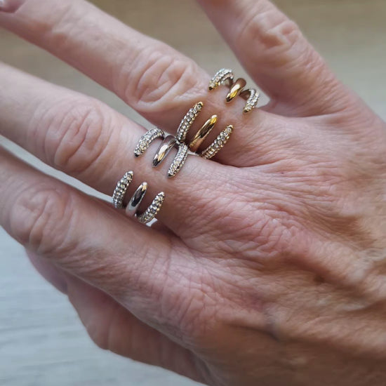 Cette bague se porte aussi bien seule, comme pièce statement, qu'en accumulation avec des anneaux plus fins.