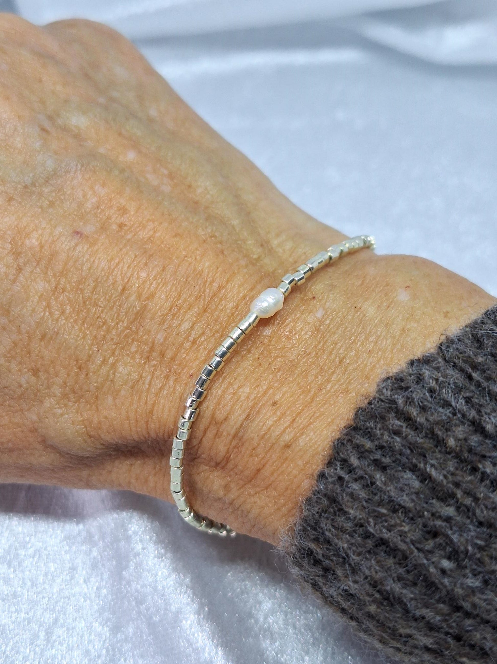 Rehaussé d'une perle d'eau douce, comme un souffle marin posé sur le poignet, évoquant les trésors cachés des rivages.