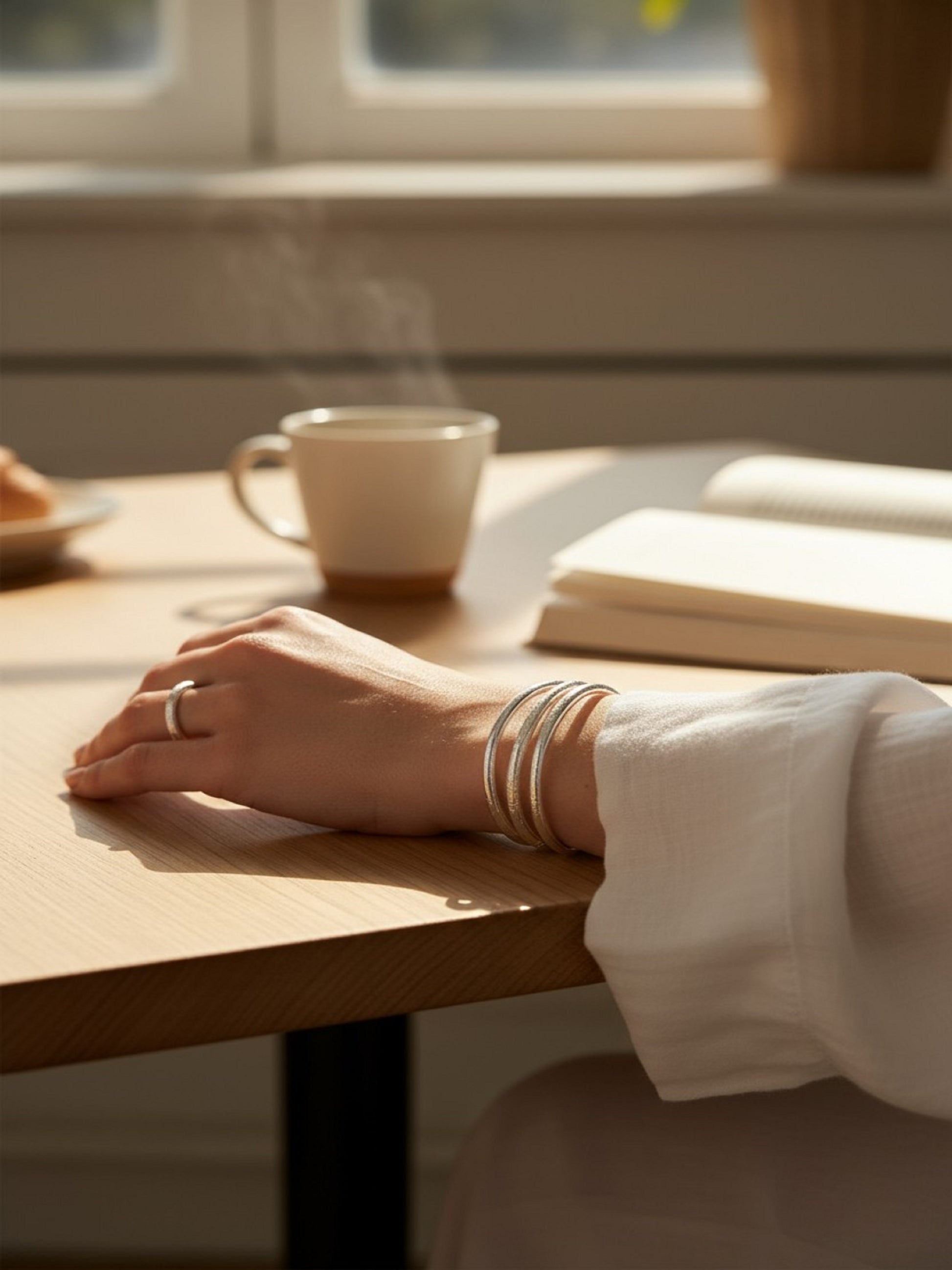 Le jonc bouddhiste est un type de bracelet souple et transparent rempli de feuilles d'or ou d'argent.
